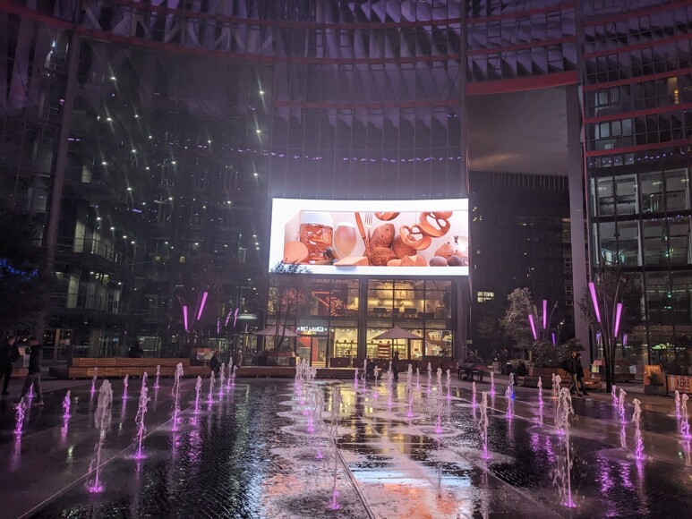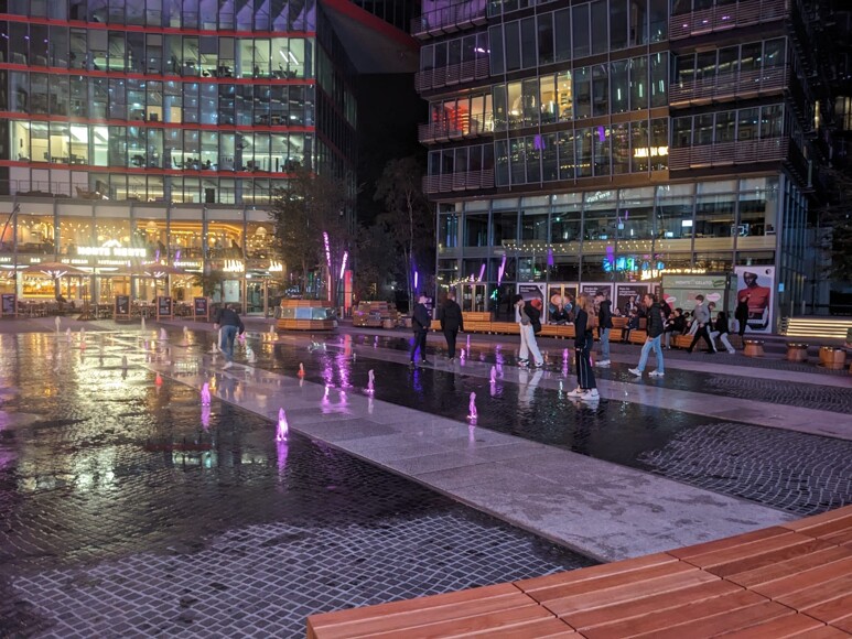 After a very brief break and dinner in the hotel, we left again to visit the German parliament - the Bundestag. From the roof terrace we soaked up the views of Berlin at night. The Brandenburger Tor, the symbol of German unification, was brilliantly illuminated and a perfect opportunity for us to take photos. We finished the evening with a visit to the Potsdamer Platz - once Europe's biggest building site where students enjoyed the water fountains and showed off the skills on the piano.